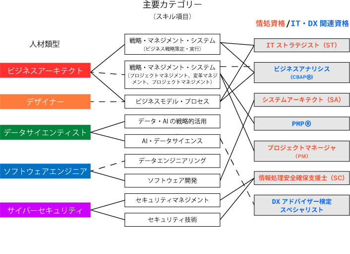 人材類型(DX推進スキル標準)とIT関連資格の対応関係