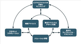 | 要求アナリシスとデザイン定義 | 要求を精緻化しモデル化する 要求を検証する 要求の妥当性を確認する 要求アーキテクチャーを定義する デザイン案を定義する 潜在価値を分析しソリューションを推奨する |